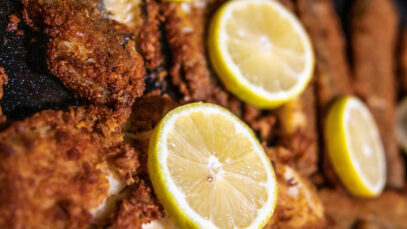 Crispy Fried Whiting with Lemon Garnish and Sauce